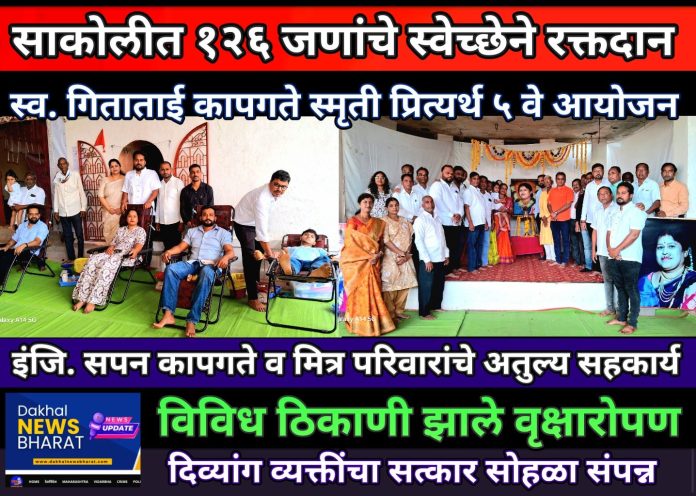 साकोली रक्तदान शिबिरात १२६ जणांचे स्वेच्छेने रक्तदान… — स्व.गिताताई कापगते स्मृती प्रित्यर्थ सलग पाचवे पुण्यस्मरणाचे आयोजन…