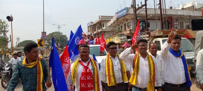 शेतकरी कामगार पक्षाच्या आदिवासी,भटके – विमुक्त आघाडीचे प्रदेशाध्यक्ष भाई रामदास जराते, भाई शामसुंदर उराडे, जिल्हा सरचिटणीस संजय दुधबळे, आझाद समाज पक्षाचे जिल्हा प्रभारी धर्मानंद मेश्राम, जिल्हाध्यक्ष राज बन्सोड, कार्याध्यक्ष विनोद मडावी, जिल्हा महासचिव पुरुषोत्तम रामटेके, चामोर्शी तालुकाध्यक्ष रघुनाथ वासेकर, शेकापच्या महिला जिल्हाध्यक्षा कविता ठाकरे, पोर्णिमा खेवले, शेतकरी आघाडीचे जिल्हाध्यक्ष गोविंदा बाबनवाडे, कामगार आघाडीचे जिल्हाध्यक्ष पवित्र दास, भटके विमुक्त आघाडीचे जिल्हाध्यक्ष डंबाजी भोयर, आदिवासी आघाडीचे जिल्हाध्यक्ष रामदास आलाम, शिक्षक आघाडीचे जिल्हाध्यक्ष शर्मिश वासनिक, भाई अक्षय कोसनकर यांच्या नेतृत्वात शेतकरी कामगार पक्षाचे कार्यालयापासून लाल – निळे झेंडे घेऊन रॅली काढण्यात आली.