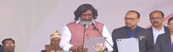 आज ४ वाजून १० मिनीटांनी झारखंडचे महामहीम राज्यपाल संतोष गंगवार यांनी हेमंत सोरेन यांना मुख्यमंत्री पदाची शपथ घेतली.ते झारखंड राज्याचे चौथ्यांदा मुख्यमंत्री झाले.