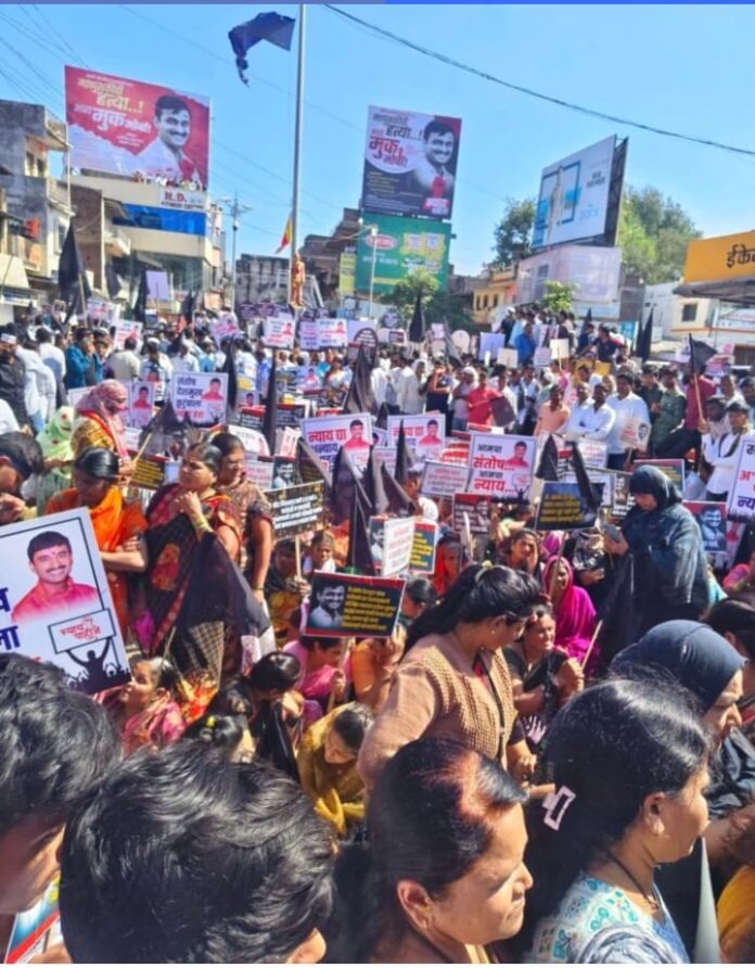 मस्साजोगचे सरपंच संतोष देशमुख यांची हत्या झाल्याची घटना काही दिवसांपूर्वी घडली. या घटनेनंतर संपूर्ण महाराष्ट्रात संतापाची लाट उसळली आहे. या घटनेप्रकरणी संताप व्यक्त करण्यात येत आहे. या घटनेतील काही आरोपींना पोलिसांनी अटक केली आहे. या घटनेतील काही आरोपी अद्याप देखील फरार आहेत. फरार आरोपींना अटक करण्याच्या मागणीसाठी आणि संतोष देशमुख यांच्या हत्येच्या घटनेच्या निषेधार्थ आज बीड जिल्ह्यात सर्वपक्षीय मोर्चा काढण्यात आला.