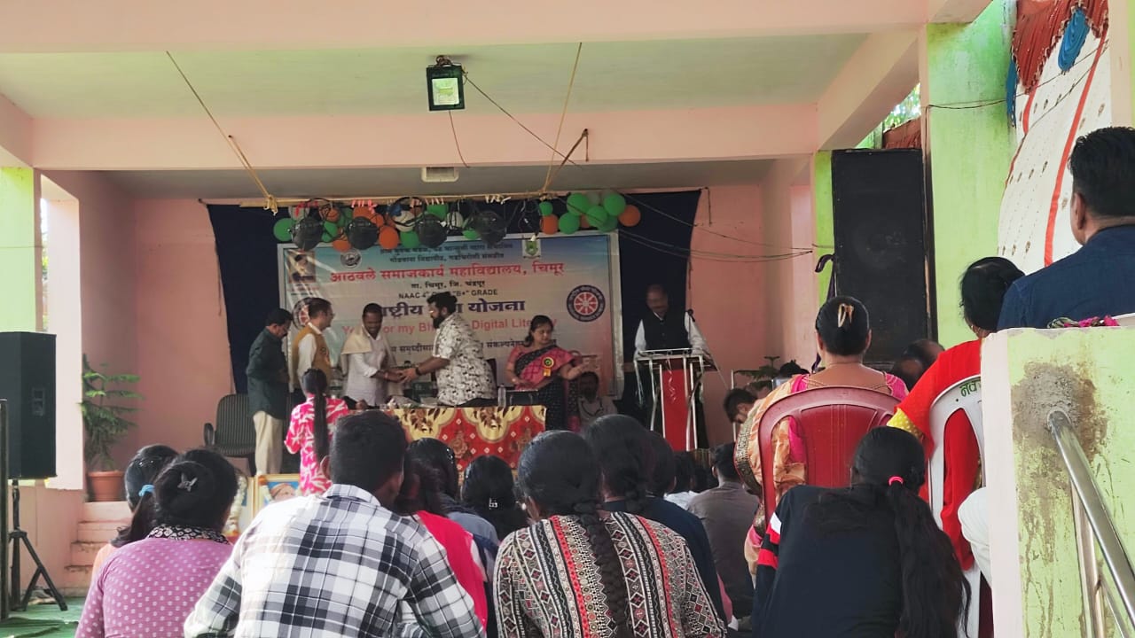 प्राचार्य डॉ.शुभांगी लुंगे यांनी आपले मार्गदर्शनात म्हणाले की गावच्या उन्नतीसाठी सगळ्यांनी झिजावे गावावरूनच देशाची प्रगती गनल्या जाते.