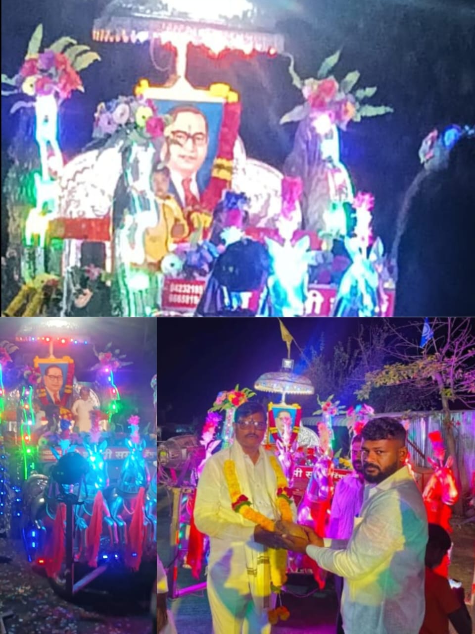 सायंकाळी डॉक्टर बाबासाहेब आंबेडकर यांच्या भव्य प्रथमेची मिरवणूक गावातील मुख्य रस्त्याने वाजत गाजत काढण्यात आली.
