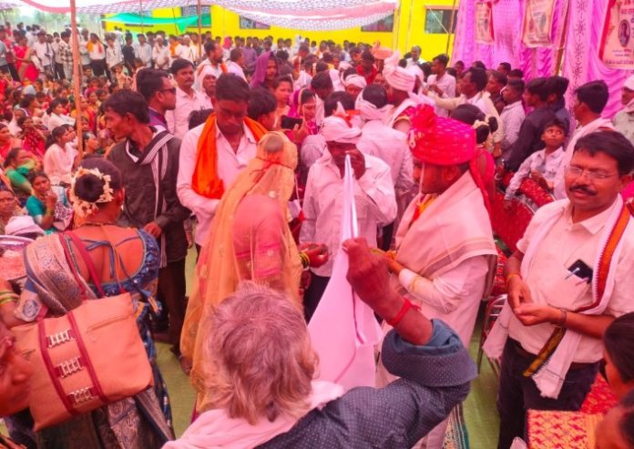 पळसगांव(पि.):- माना आदिम जमात समन्वय समिती,आदिवासी माना जमात विद्यार्थी युवा संघटना यांच्या संयुक्त विद्यमाने माना आदिम जमातीचा सामूहिक विवाह सोहळ्याचे मालेवाडा येथे आयोजन करण्यात आले होते.