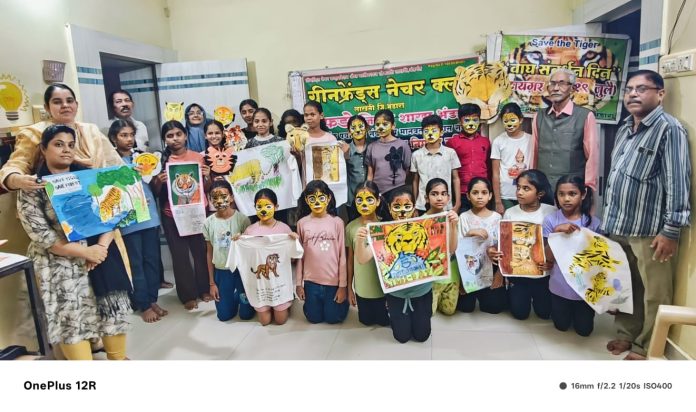 लाखनी :- ग्रीनफ्रेंडस नेचर क्लब तर्फे लाखनी निसर्गमहोत्सव तसेच इंटरनॅशनल टायगर डे च्या निमित्ताने वाघांचे जंगलातील म्हत्व व त्याविषयक समाज जागृती करण्यासाठी टायगर फेस पेंटिंग, टी शर्ट पेंटिंग, टायगर मास्क मेकिंग तसेच टायगर ड्रॉइंग विथ स्लोगन स्पर्धांचे आयोजन ताजुश शरिया कोचिंग क्लासेस यांचे प्रमुख सहकार्याने व अ भा अंनिस शाखा लाखनी तसेच नेफडो जिल्हा भंडारा यांचे सहकार्याने लाखनी बसस्थानकावरील नेचर पार्कवर घेण्यात आला.