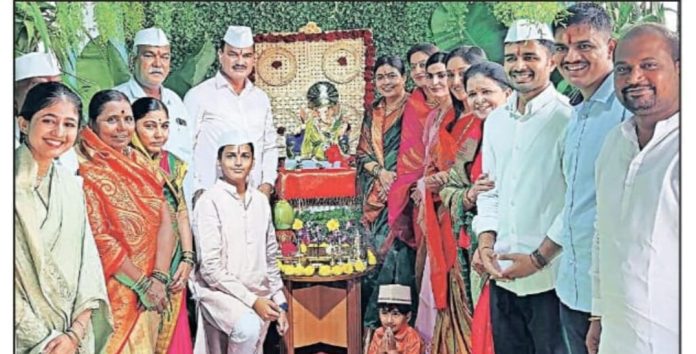 निसर्ग राजाची अशीच साथ राहू दे,माझ्या शेतकरी राजाच्या कष्टाचे फळ मिळुन जीवन सुखी राहू दे :- कृषिमंत्री दत्तात्रय भरणे… — कृषिमंत्र्यांच्या निवासस्थानी फळा,फुलांची सजावट करून गणरायाची स्थापना…