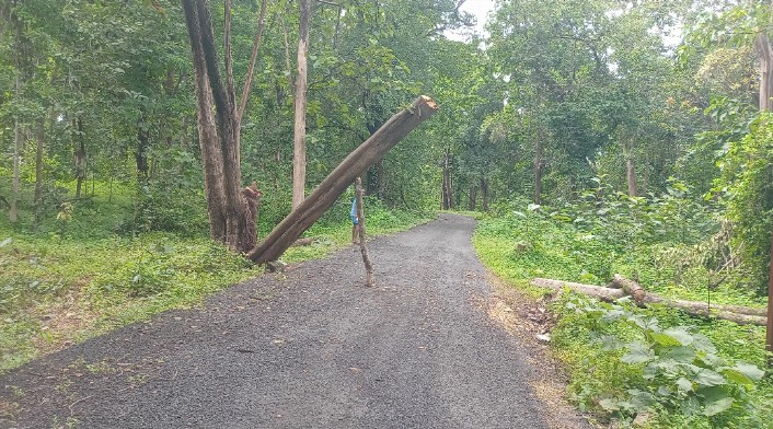 लाईन दुरुस्त करत असताना विद्युत तारावर पडलेले झाड तोडावे लागले त्या झाडाला खाली न पडता त्या झाडाला दुसऱ्या एका काठीचा आधार देऊन तसेच रस्त्यावर उभे करून ठेवले.त्यामुळे येणारा जाणाऱ्या लोकांच्या अंगावर पडण्याची दाट शक्यता असल्याने अपघाताचा धोका बळावला आहे.