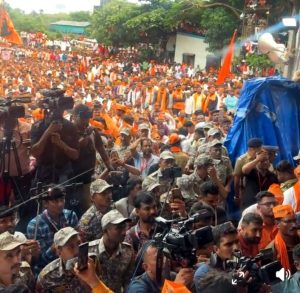 घुमवत ठेवणाऱ्या त्यांच्या कार्यपद्धतीच्या विरोधात मुंबईच्या आझाद मैदानावर मनोज जरांगे पाटलांच्या नेतृत्वात मराठा समाजाची एकसंघ शक्ती एकवटली आहे.मुंबईचे आझाद मैदान मराठा समाज बांधवांनी खचाखच भरले असून मैदानाच्या बाहेर सुद्धा लाखो मराठा बांधवांची उपस्थिती आहे.