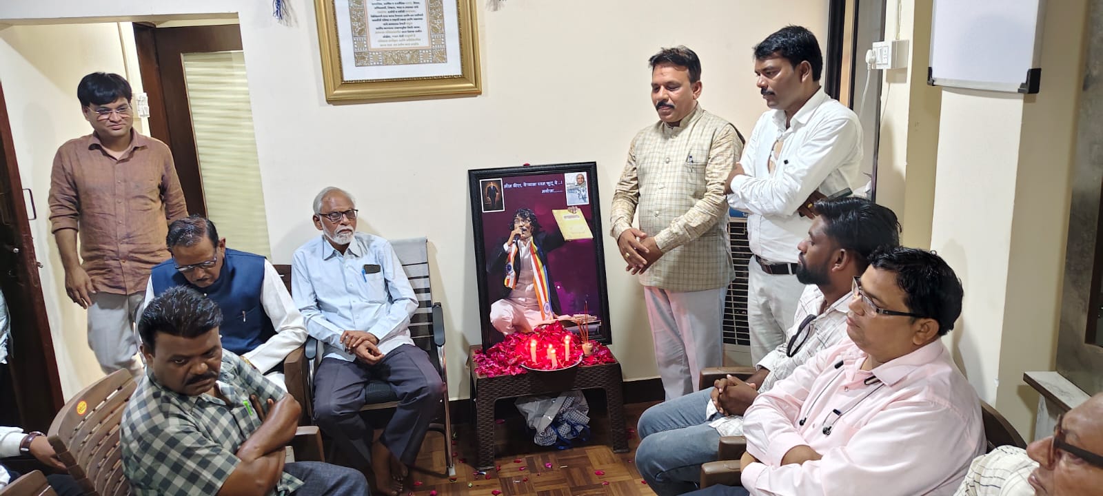 साकोली :- अस्मितेचा एल्गार कार्यालय भंडारा येथे सुप्रसिद्ध कव्वाल, गायक व आंबेडकरी विचारक स्मृतीशेष मनोज कोटांगले यांच्या स्मृतीला अभिवादन करून त्यांच्या तैलचित्राचे दि.२८ आॅगष्ट २०२५ रोजी आंबेडकरी चळवळीचे जेष्ठ सामाजिक कार्यकर्ते अमृत बन्सोड यांच्या अध्यक्षतेखाली अनावरण करण्यात आले.