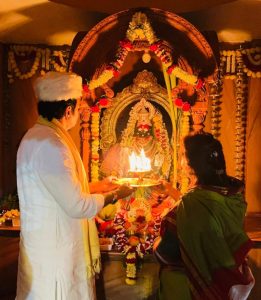 बावडा येथिल प्रसिध्द श्री कामाक्षी पद्मावती मंदिरामध्ये नवरात्रोत्सवानिमित्त राष्ट्रीय सहकारी साखर कारखाना महासंघ नवी दिल्लीचे अध्यक्ष, माजी मंत्री हर्षवर्धन पाटील व नीरा भीमा सहकारी साखर कारखान्याच्या अध्यक्षा सौ.भाग्यश्री पाटील यांच्या शुभहस्ते महाआरती शुक्रवारी सायंकाळी करण्यात आली.