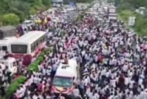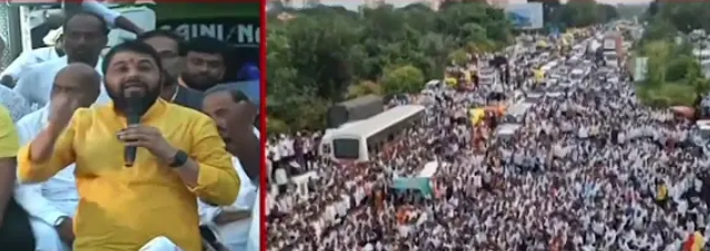 Taking the words of MLA Bachu Kadu as important, lakhs of farmers have participated in the loan waiver march and have blocked the traffic on the national highways of Nagpur, Raipur, Hyderabad, Chandrapur, Wardha. Currently, there is a huge traffic jam on this highway.