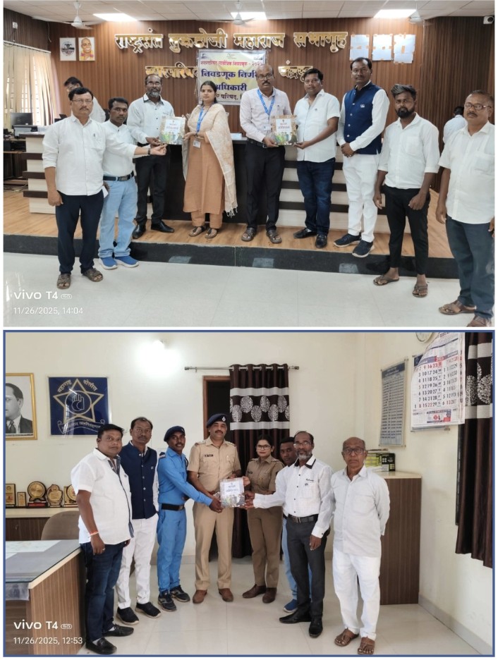 मुकनायक फाऊंडेशनच्या वतीने भारतीय संविधान ग्रंथ,चिमूर तहसीलदार श्रिधर राजमाने,न.प. मुख्याधिकारी अर्चना वंजारी,चिमूर ठाणेदार दिनेश लबडे यांना भेट देण्यांत आलें.