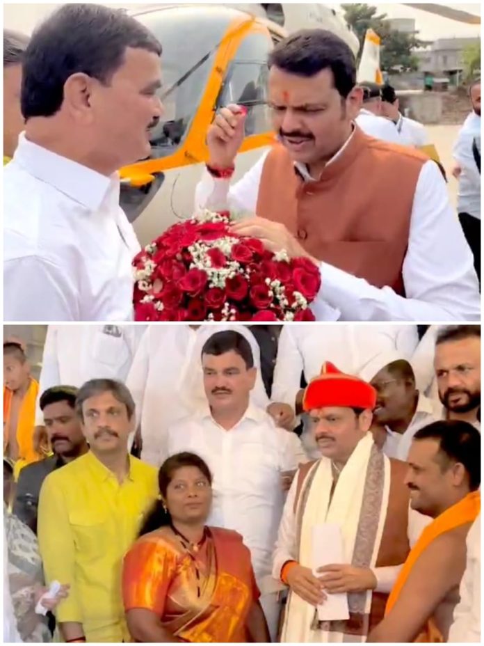 निरा नरसिंहपुर तालुका इंदापूर येथे राज्याचे मुख्यमंत्री देवेंद्र फडणवीस यांचे लक्ष्मी नरसिंह नगरीत आगमन होताच क्रीडामंत्री दत्तात्रय भरणे व माजी सहकार मंत्री हर्षवर्धन पाटील यांच्या हस्ते स्वागत करण्यात आले.