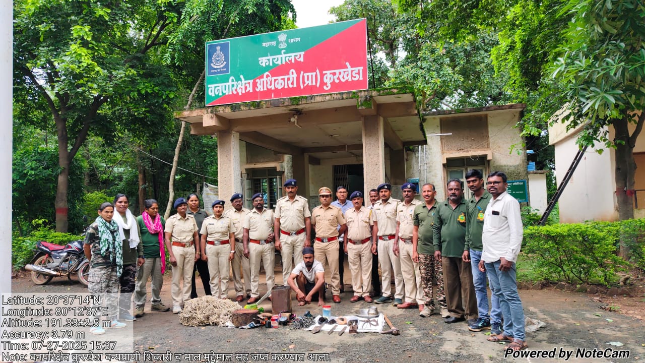 सदर कार्यवाही वडसा वनविभागाचे उपवनसंरक्षक वरूण बि. आर. साहायक वनसंरक्षक रविन्द्र सूर्यवंशी यांचा मार्गदर्शनात वनपरिक्षेत्र अधिकारी (वन्यजीव) बी एच डिगोळे कूरखेडा वनपरिक्षेत्र अधिकारी लक्ष्मीकांत गोपूलवाड वडसा वनपरिक्षेत्र अधिकारी कैलाश धोंडणे लाखांदूरचे पोलीस निरीक्षक सचिन पवार कूरखेडा वन परिक्षेत्र साहायक संजय कंकलवार क्षेत्र साहायक बाबूराव तूलावी क्षेत्र साहायक बोरकर वनरक्षक एम. ई. सयाम,के. के. काशीवार, ए. एन. कूमरे, एम. के. दूधबळे, कू. जी. बी. आरेवार, व्ही. एन. हातमोडे,एस डब्ल्यू गोन्नाडे,कू.एन एस हिडामी, कू.सपना वालदे, कू.एम. डी. साठवने, वनरक्षक अहिर वाहन चालक जितेंद्र राऊत, विक्की गोबाडे यांच्या5 चमूने केली मागील सहा महिण्यात वन्य प्राण्यांचा शिकारी टोळी विरोधात वडसा वन विभागाची ही दूसरी कार्यवाही आहे.