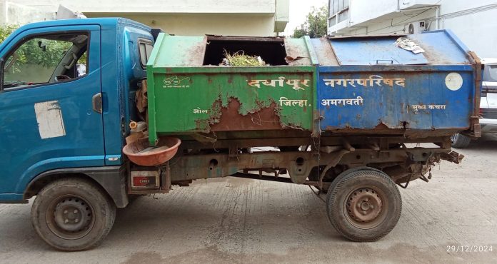 राष्ट्रीय स्वच्छता अभियान अंतर्गत राबविण्यात येणाऱ्या दर्यापूर नगरपरिषदेच्या शहरातील कचरा गोळा करणाऱ्या कचरा गाड्या सध्या कचऱ्याच्याच अवस्थेत गेले असल्याने नव्या कचरा गाड्या खरेदी करणे आवश्यक झाले असुन सध्या कार्यरत असलेल्या कचरा गाड्या ह्याच भंगार अवस्थेत दिसुन आहे.
