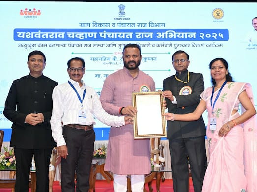 ग्राम विकास व पंचायत राज विभाग यांच्या वतिने यशवंतराव चव्हाण पंचायत राज अभियान अंतर्गत दि.२७ मे रोजी यशवंतराव चव्हाण प्रतिष्ठान,मंत्रालय मुंबई येथे अत्युत्कृष्ट काम करणाऱ्या पंचायतराज संस्था आणि गुणवंत अधिकारी कर्मचारी गौरव समारंभ कार्यक्रम घेण्यात आला.