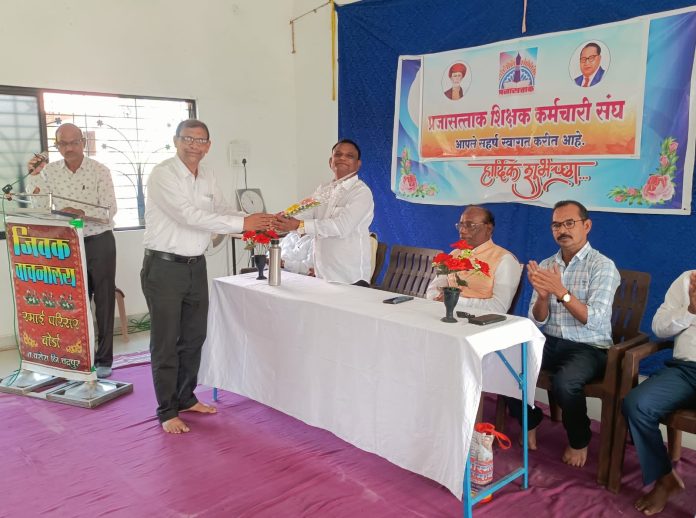 तसेच या प्रसंगी वरोरा तालुक्यातील सेवानिवृत्त शिक्षक व शिक्षकेतर कर्मचारी यांचा सेवानिवृत्ती पर सत्कार करण्यात आला. याप्रसंगी हर्षबोधी सर, पाटील सर, बोधे सर, नंदेश्वर सर यांनी मार्गदर्शन केले.