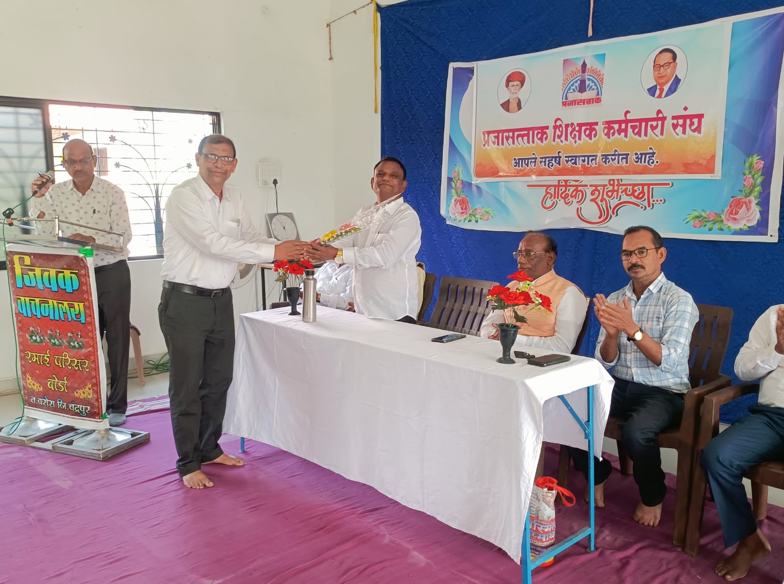 प्रजासत्ताक शिक्षक कर्मचारी संघाची आमसभा काल दिनांक 29/12/2024 ला जीवक वाचनालय वरोरा येथे पार पडली.सभेचे अध्यक्ष प्रजासत्ताक शिक्षक कर्मचारी संघाचे केंद्रीय अध्यक्ष आदरणीय अरुणकुमार हर्षबोधी सर हे होते. सभेला केंद्रीय उपाध्यक्ष एम. जी. पाटील सर,कार्यवाह संजय बोधे सर, विभागीय अध्यक्ष हेमराज नंदेश्वर सर, श्रीराम मेंढे सर, श्रीरामे सर उपस्थित होते.